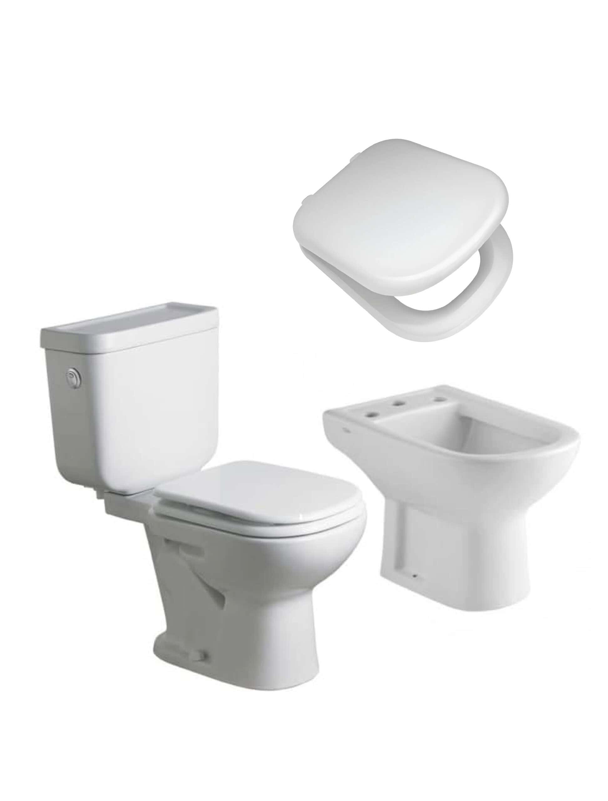 Combo Bari inodoro largo + deposito de apoyo 6lts dual + bidet blanco Ferrum (3 piezas) tapa DE REGALO