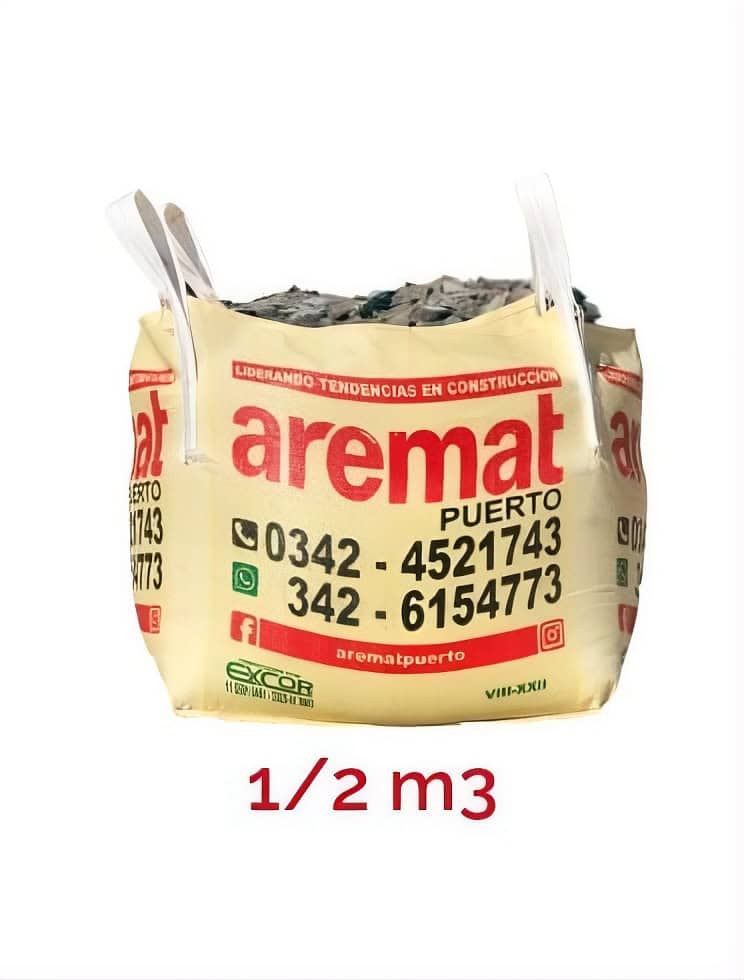 Material de demolición triturado, en bolsones de 1/2 m³. Se emplea como base o relleno en nivelación de suelos y obras de infraestructura. Una opción económica y sustentable para reaprovechar residuos de construcción.